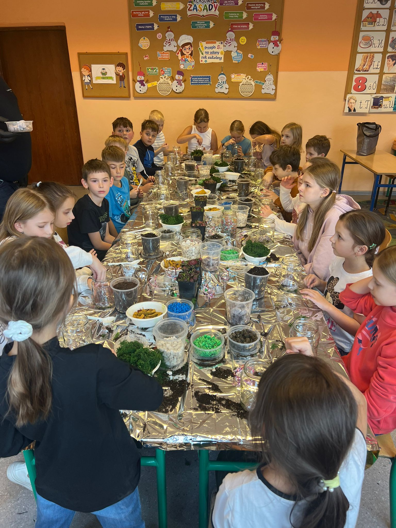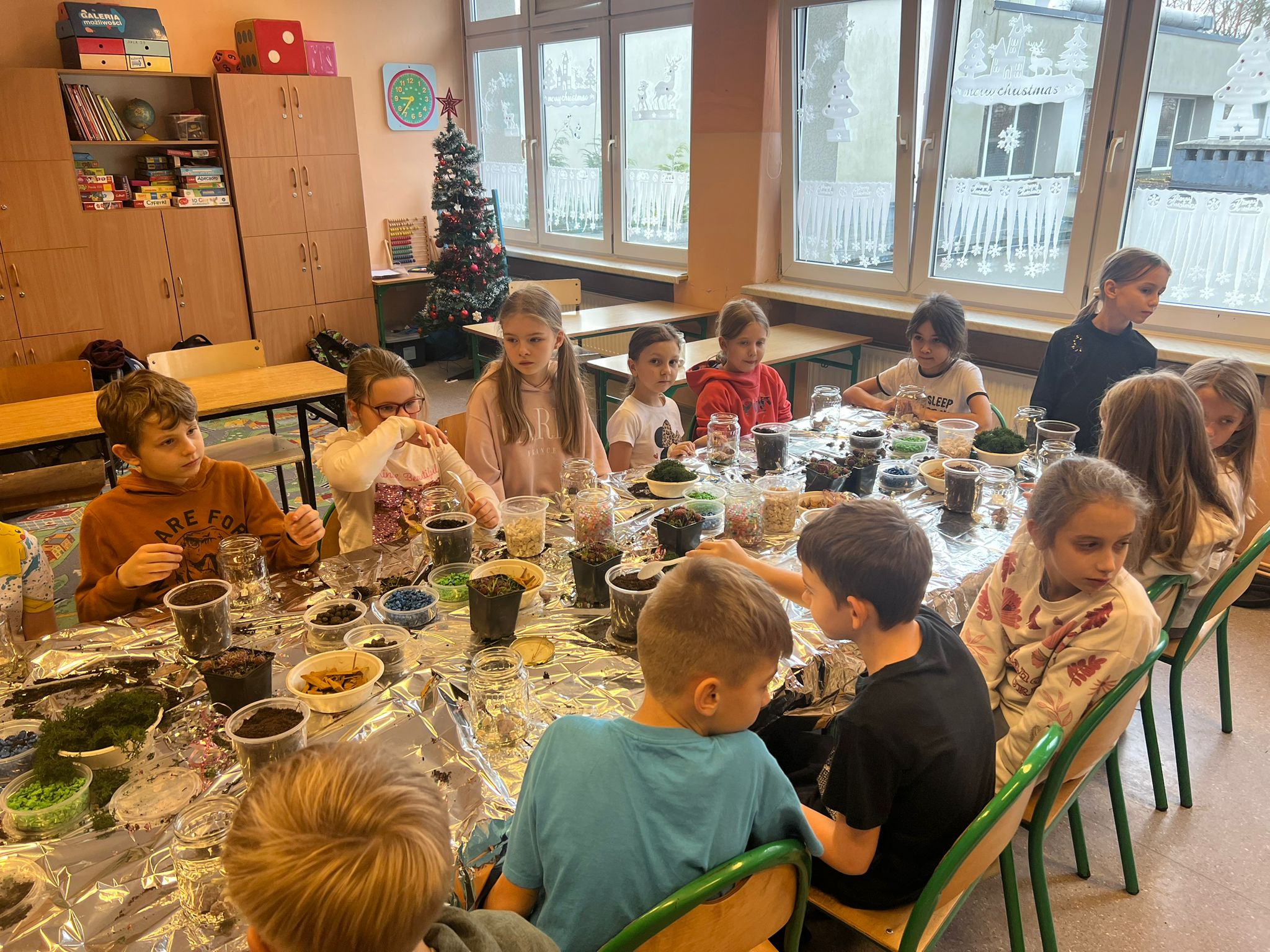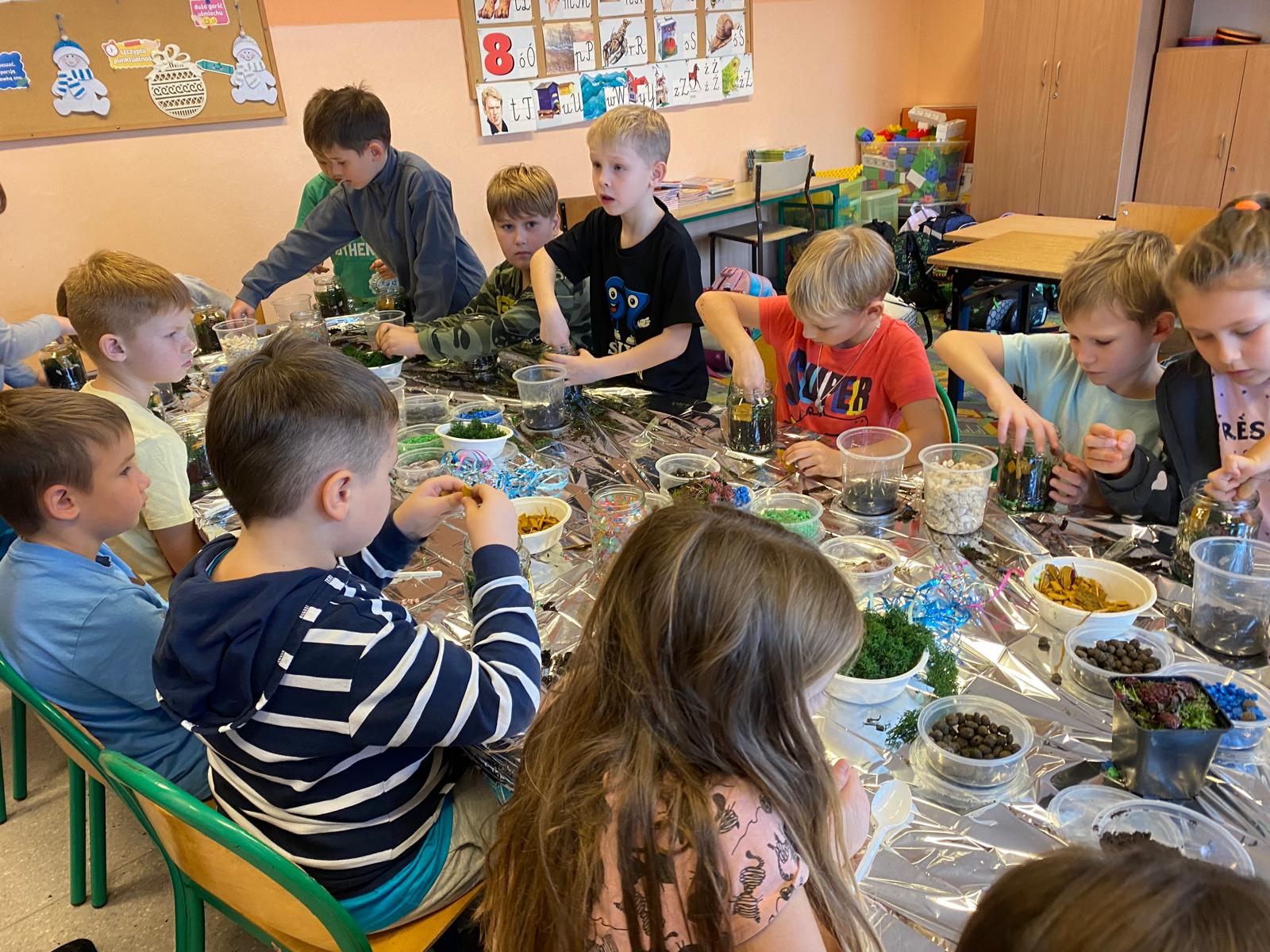 Uczniowie klas I-III uczestniczyli w kreatywnych  warsztatach  „Las w słoiku”. Podczas zajęć dzieci poznały zasady tworzenia miniaturowych ekosystemów oraz samodzielnie przygotowały swoje kompozycje.