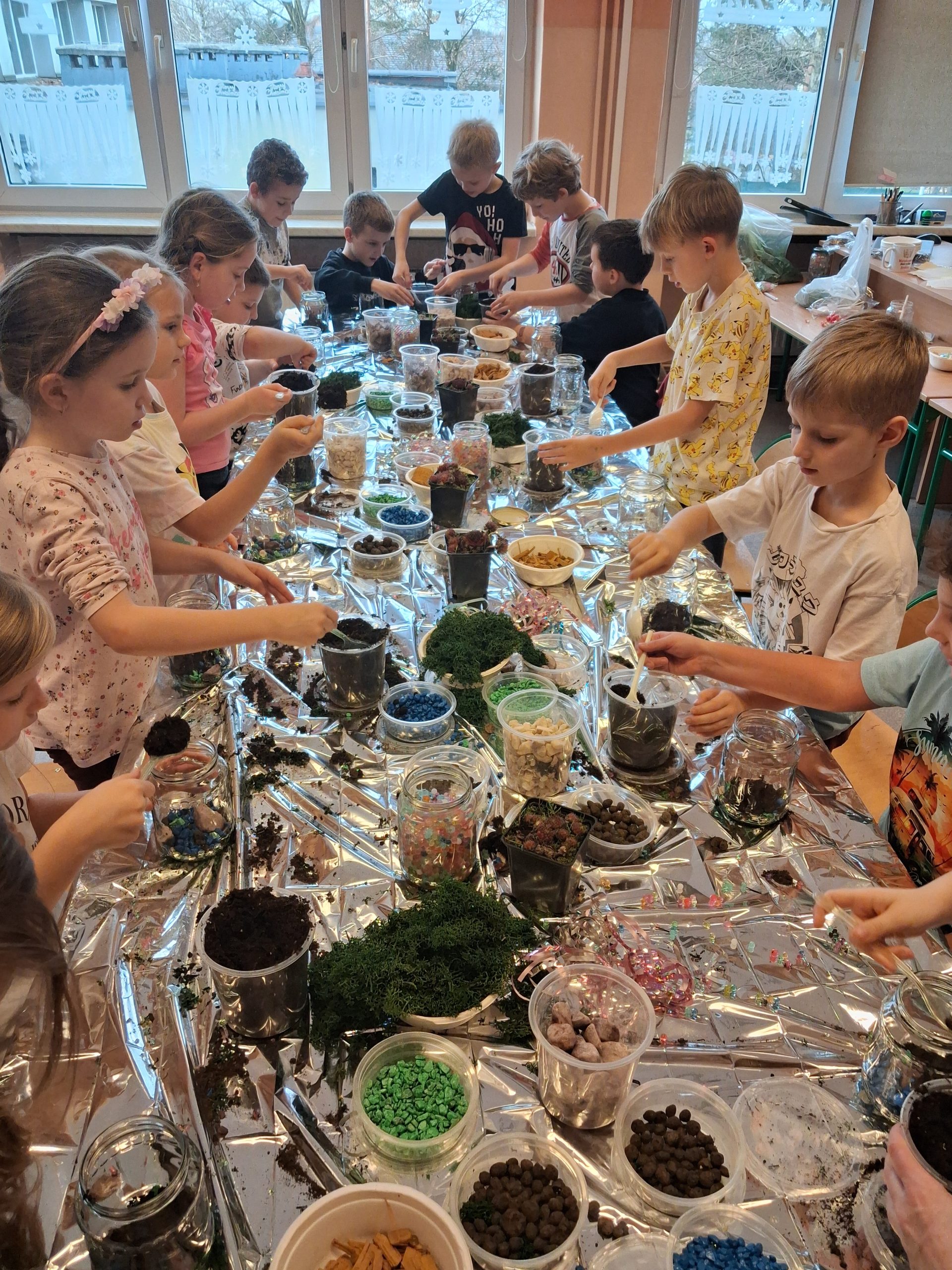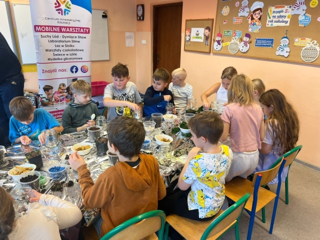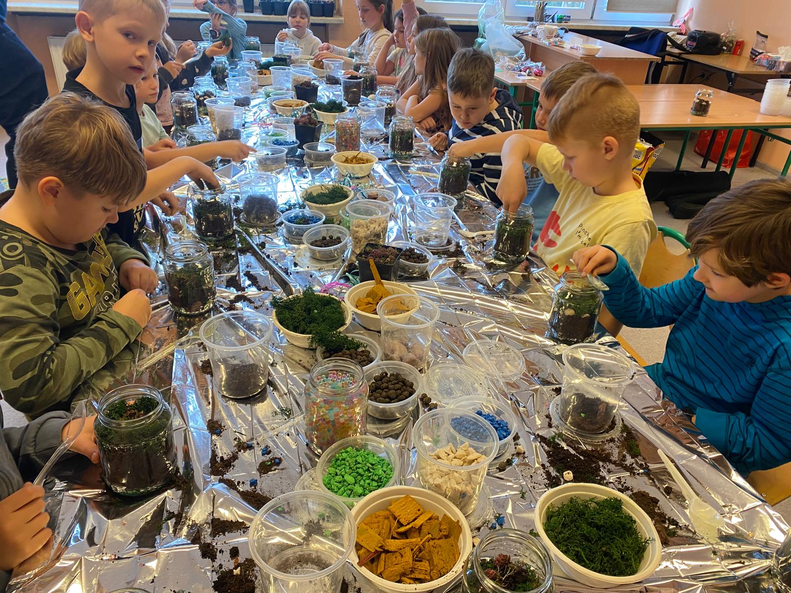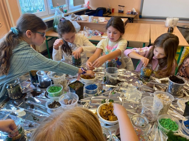 Uczniowie klas I-III uczestniczyli w kreatywnych  warsztatach  „Las w słoiku”. Podczas zajęć dzieci poznały zasady tworzenia miniaturowych ekosystemów oraz samodzielnie przygotowały swoje kompozycje.