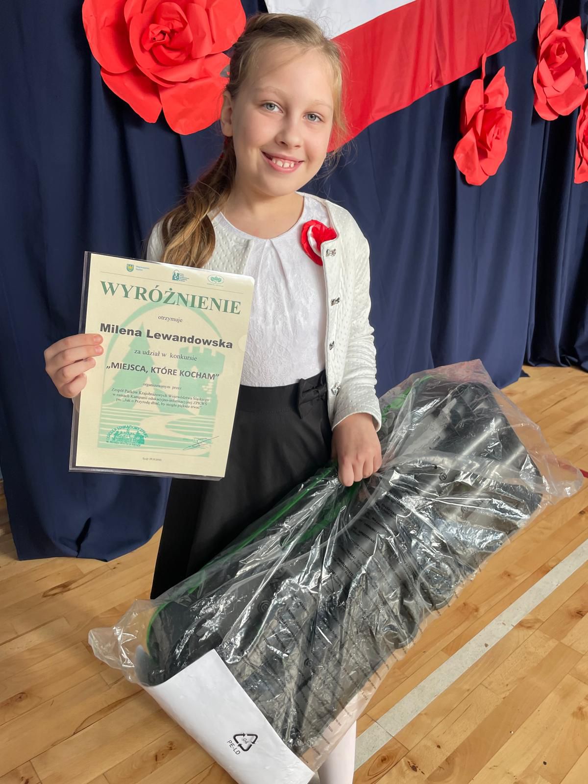 Gratulacje dla naszej uczennicy z klasy czwartej. Milena otrzymała wyróżnienie w konkursie, w którym zaprezentowała piękno jednego z Parków Krajobrazowych naszego województwa.