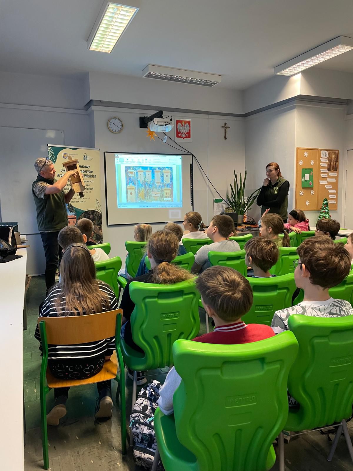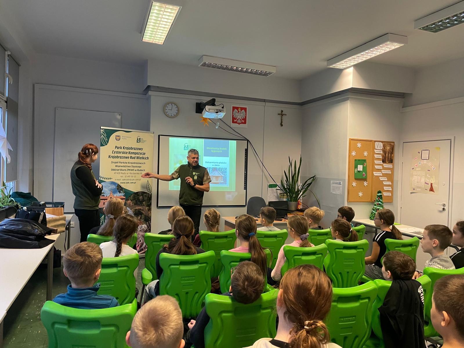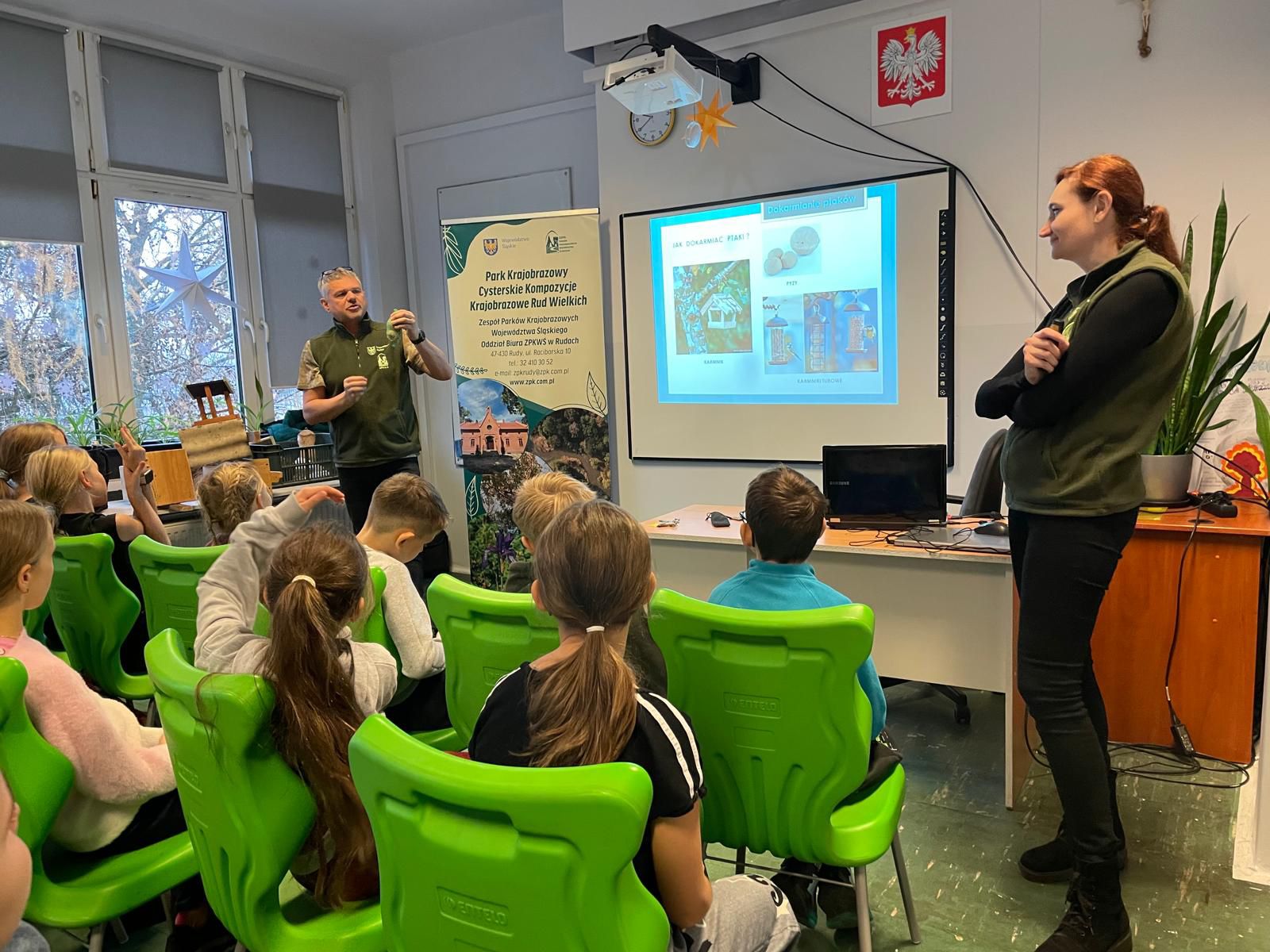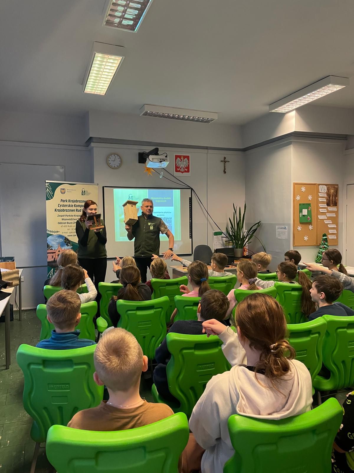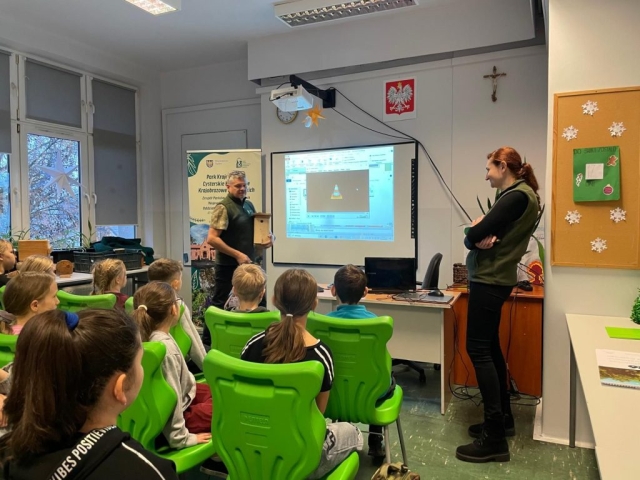 11 grudnia w naszej szkole odbyły się zajęcia przyrodnicze z pracownikami Parku Krajobrazowego CKKRW na temat życia naszych ptaków. Uczniowie poznali różne ciekawostki o budkach lęgowych, karmnikach oraz dowiedzieli się, jak dokarmiać ptaki w zimie.