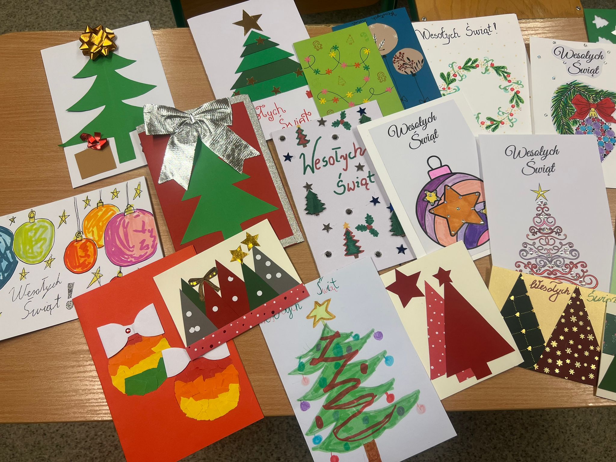 Uczniowie klas 3 z ogromnym zaangażowaniem przygotowali piękne kartki świąteczne.