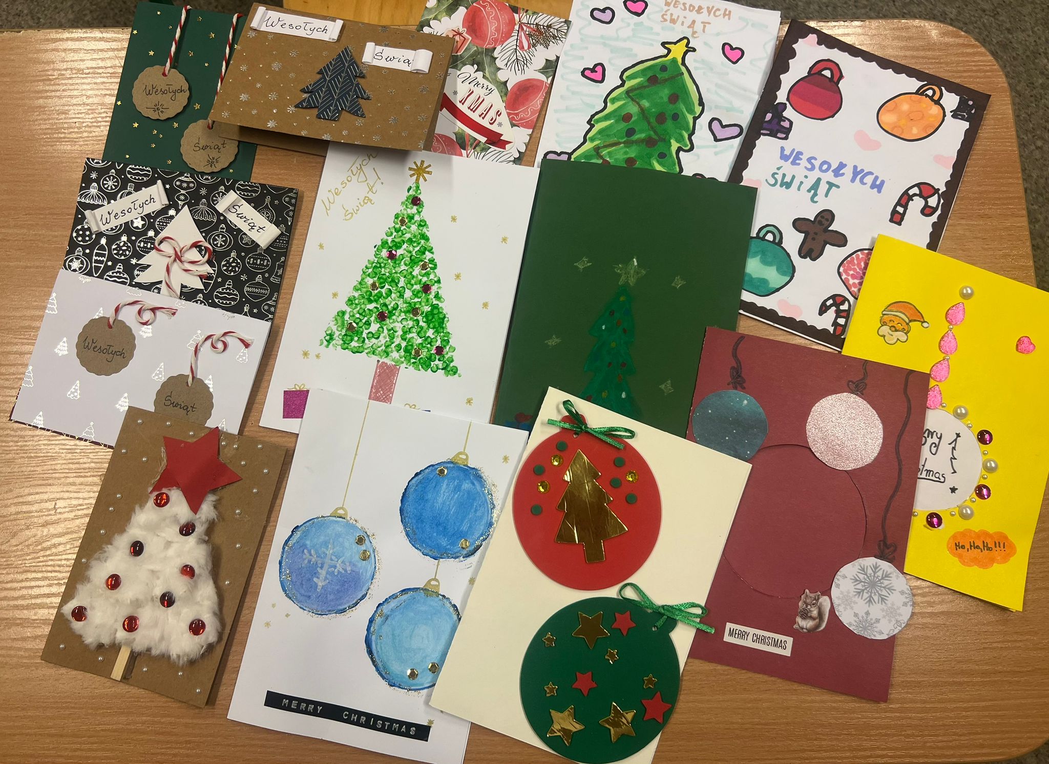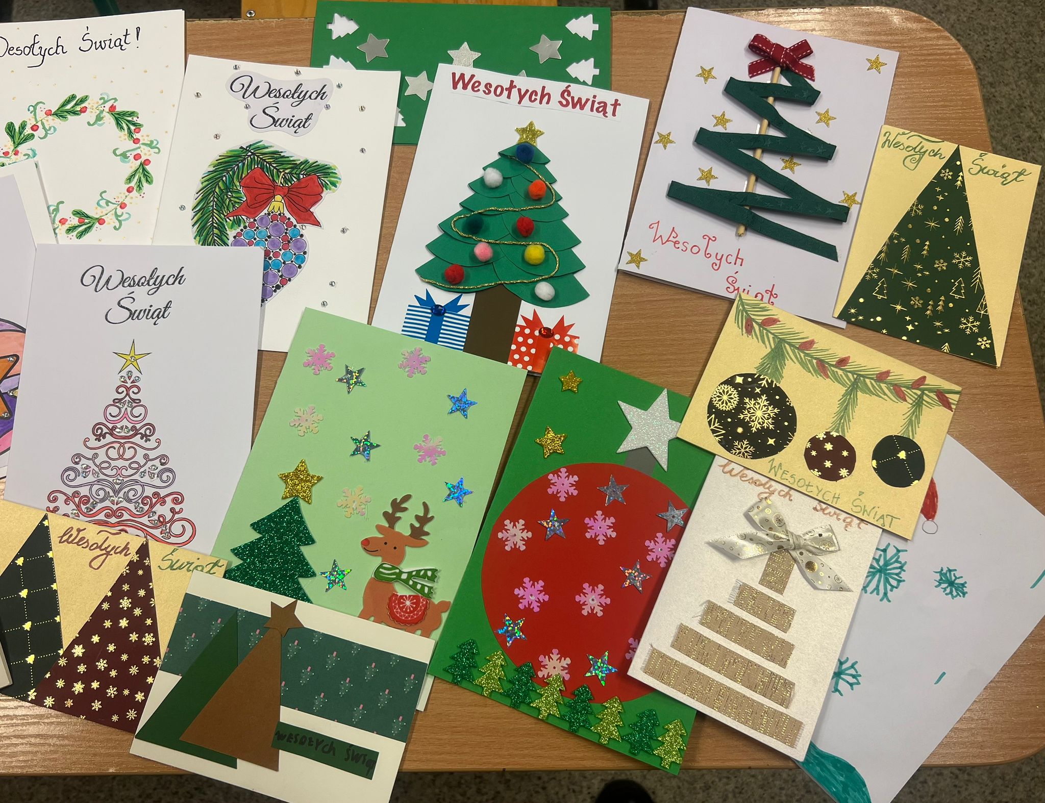 Uczniowie klas 3 z ogromnym zaangażowaniem przygotowali piękne kartki świąteczne.