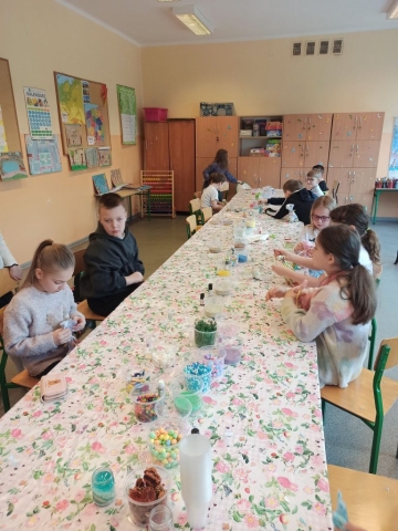 Dzieci z ogromnym zaangażowaniem i kreatywnością dobierały kolory, ozdoby oraz kształty, tworząc niepowtarzalne dekoracje. Warsztaty były nie tylko świetną zabawą, ale również okazją do rozwijania zdolności manualnych i wyobraźni 🎨