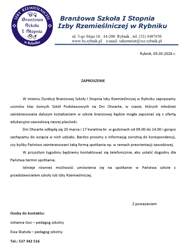 Rekrutacja do Branżowej Szkoły I stopnia Izby Rzemieślniczej w Rybniku